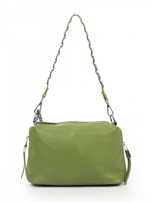 Сумка женская выполнена из натуральной кожи. Детали: 1 ручка 55 см, 1 регулируема ручка от 110 см до 135 см. Каркас сумки: мягкий. Фактура кожи: зернистая. Застежка: молния. Внутри изделия: 2 отделения, 1 карман на молнии, 2 открытых кармана. Снаружи изделия: карман на молнии сзади. Подкладка из хлопка. Металлическая брендированная фурнитура серебристого цвета. В комплекте фирменный пыльник для хранения сумки.