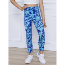 Леггинсы из кулирного полотна.Длинные,узкий крой.Пояс цельнокроеный на резинке.Принт в цвет нижней контрастной детали.