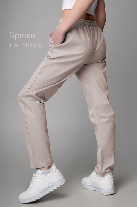 Льняные штаны имеют свободный крой и слегка заужены книзу, что делает их стильными и удобными. Пояс на резинке с регулируемым шнурком дает идеальную посадку и простоту в надевании. Внутренние карманы по бокам добавляют функциональности и позволяют хранить необходимые мелочи.