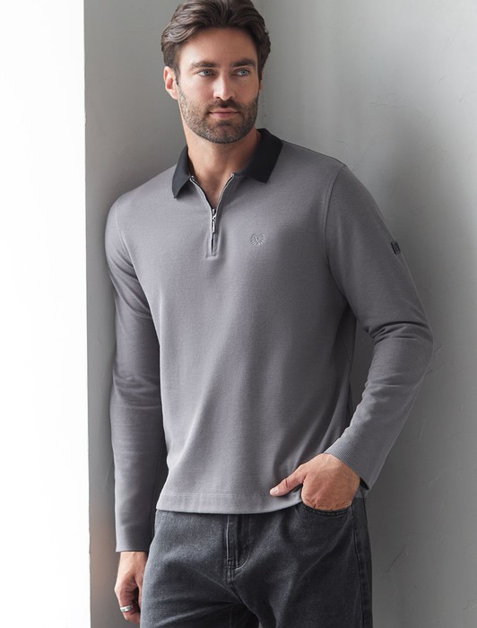 Поло хорошо садится по фигуре благодаря добавлению эластичных волокон — такой вариант подходит для мужчин любого роста и размеров, не стесняет движений и создает ощущение свободы и легкости. Лонгслив с молнией дополнен ненавязчивой вышивкой на груди в виде логотипа бренда в тон основному цвету, которая придает образу индивидуальность, не перегружая его лишними акцентами. Лаконичная вышивка служит оригинальным декоративным элементом, гармонично вписываясь в общий минималистичный облик. Такой подход делает лонг универсальным решением для тех, кто ценит простоту и стремится подчеркнуть свой вкус через детали. На рукаве нашивка из эко-кожи с логотипом бренда, по бокам небольшие разрезы - дополняют современный дизайн лонгслива.