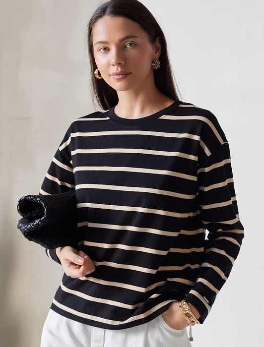 Состав: 92%Хлопок 8%ПУ Плотность: 170 Г/м2Свободный лонгслив черного цвета в бежевую полоску с длинным рукавом выполнен из премиального хлопка с добавлением эластана, плотностью 170 Г/м2, что обеспечивает комфорт и приятные тактильные ощущения. Полоска - придает изделию легкую текстурность и стильный вид, а круглый ворот создает универсальный образ, который подойдет для повседневного использования. Такой лонгслив идеально подходит для весеннего и летнего сезона благодаря легкой и дышащей ткани. Представленная широкая размерная линейка позволяет выбрать оптимальный вариант на любую фигуру, в том числе на плюс-сайз, обеспечивая свободу движений и удобство на каждый день. Этот комфортный лонгслив станет отличной базой в гардеробе, сочетаясь с различными стилями одежды и создавая простой, но эффектный образ.