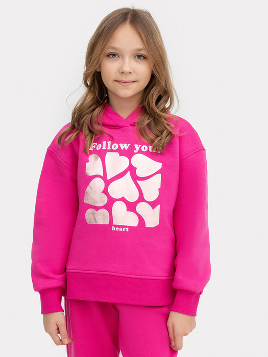 Комфортное расслабленное худи для девочек. Выполнено из легкого трикотажного футера. Прямой силуэт, длинные рукава на широких манжетах, уютный капюшон – ничего лишнего. Особый комфорт дарит спущенная линия плеча. Девочке наверняка понравится оформление этого худи.