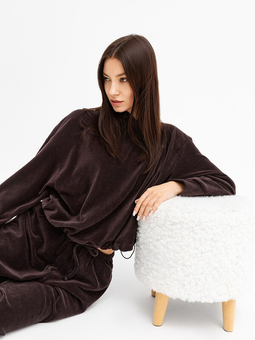 Vilatte Худи из бархатистого велюра D49.053 черный