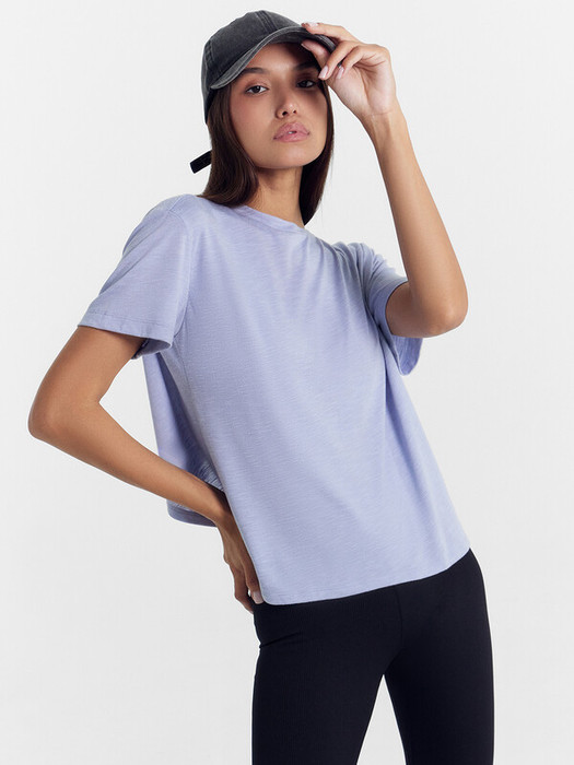 Нижний срез футболки и рукавов обработан швом вподгибку.