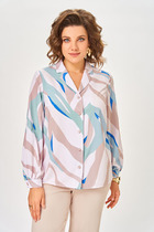 Блузка женская свободного силуэта из ткани. Блузка с цельнокроеной планкой и центральной застежкой на пуговицы. На левой детали переда накладной карман.