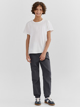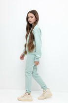 Брюки изготовлены из трикотажного полотна футер. Брюки свободного силуэта. Сиденье немного спущено. В боковых швах обработаны карманы. Подкладка карманов из кулирки. Пояс отрезной с эластичной тесьмой внутри. В передней части с лицевой стороны пробиты петли и втянут шнур.
