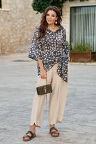 Брюки полуприлегающего силуэта, расклешенные к низу, в боковом шве потайная молния Invisible №4,5мм. Пояс обработан продублированной обтачкой из основного полотна.  Низ изделия вподгибку.