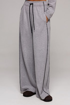 Свободные брюки женские прямого силуэта из смесовой льняной ткани. Пояс отрезной, из основного полотна. Центральная застежка на молнию с пуговицей. Карманы с отрезным бочком. На передней детали застрочена стрелка. На задней детали вытачки.