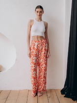 Брюки женские прямого силуэта из трикотажного полотна интерлок. Пояс цельнокроенный на жаккардовой эластичной тесьме.