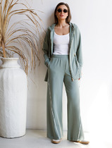 Широкий пояс со скрытой эластичной тесьмой мягко фиксирует талию, не создавая давления. Для индивидуальной регулировки предусмотрена внутренняя кулиска со шнурком, аккуратно скрытая в подгибе пояса.