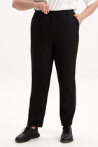 Боковые швы смещены вперед, чтобы создать более плавный и женственный силуэт. На поясе предусмотрена мягкая резинка, а в боковых швах спрятаны удобные карманы. Особый крой в области колена позволяет брюкам сохранять свою форму и не сковывать движения при ходьбе.
