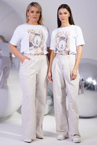 Брюки женские свободного силуэта из трикотажного полотна «под кожу». Пояс отрезной из основного полотна с эластичной тесьмой внутри (20мм 20RV). На передних деталях обработаны карманы-хулиганы. Подкладка кармана из подкладочной ткани. На правой передней половинке проложена декоративная строчка - имитация гульфика. Нижние срезы брюк подклеены.