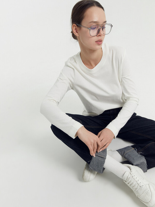 Джемпер женский прямого силуэта из трикотажного полотна кулирка. Горловина круглой формы, широкая обтачка из рибаны. Рукав втачной, длинный. Подгибки низа и рукава широкие.