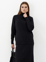 Джемпер женский прилегающего силуэта из трикотажного плотна рибана. Горловина круглой формы, окантована бейкой из рибаны. Рукав втачной, длинный, узкий. Нижние срезы обработаны швом вподгибку.