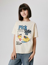 Футболка верхняя прямого силуэта. Перед и спинка цельнокроенные. Рукава втачные короткие. Линия плеча спущена. Горловина круглой формы, обтачка из трикотажного полотна рибаны. Шов втачивания рибаны по спинке закрыт бейкой из основного полотна. Низ футболки и рукавов обработан на 2-х игольной плоскошовной машине швом в подгибку.