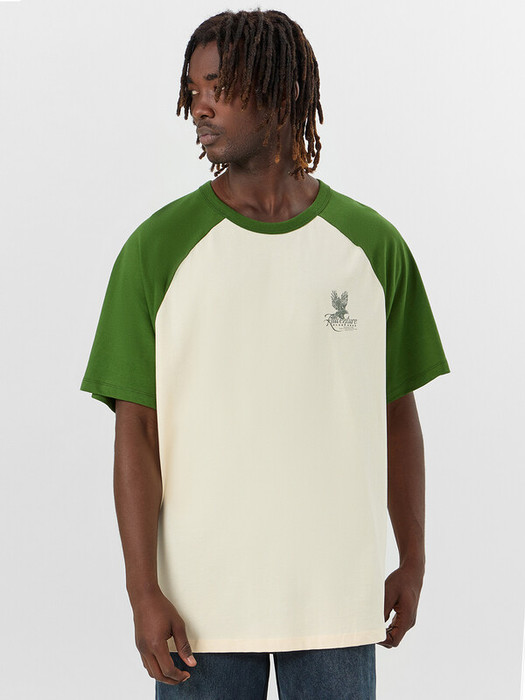 Нижние срезы футболки и рукавов обработаны швом вподгибку.