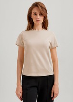 Хлопковая футболка свободного силуэта из трикотажной кулирки. Вырез круглой формы. Свободу движений гарантируют спущенная линия плеча и углубленная пройма. Рукава широкие, чуть выше локтя. Стильная модель!