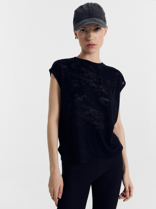 Футболка без рукавов, линия плеча спущена.