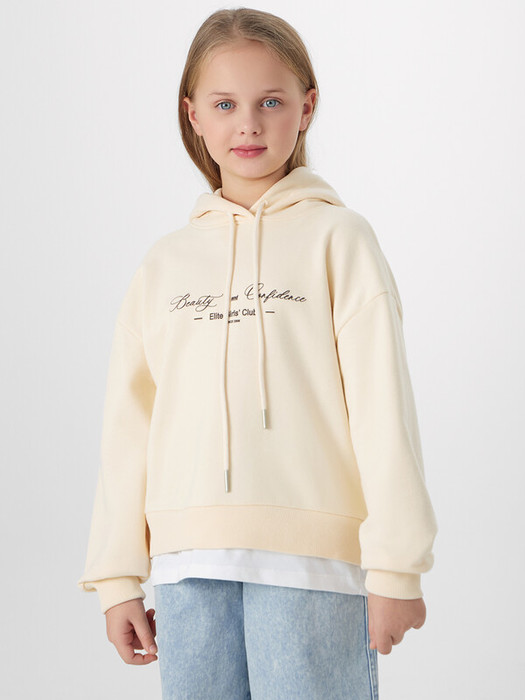 Худи для девочек, свободного силуэта (оверсайз), с капюшоном. Горловина округлой формы. Капюшон со средним швом, на подкладке из основного полотна, в капюшоне пробиты петли и втянут шнур, круглый с наконечником (арт. 8NMKXWC-1). Плечо спущено, рукав втачной длинный. По низу рукава отрезная манжета из рибаны. Пояс отрезной из рибаны, отстрочен.