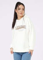 Худи дополнено практичным капюшоном со шнурком-утяжкой для защиты от ветра. Спереди расположен большой накладной карман, где можно согреть руки или хранить мелочи.