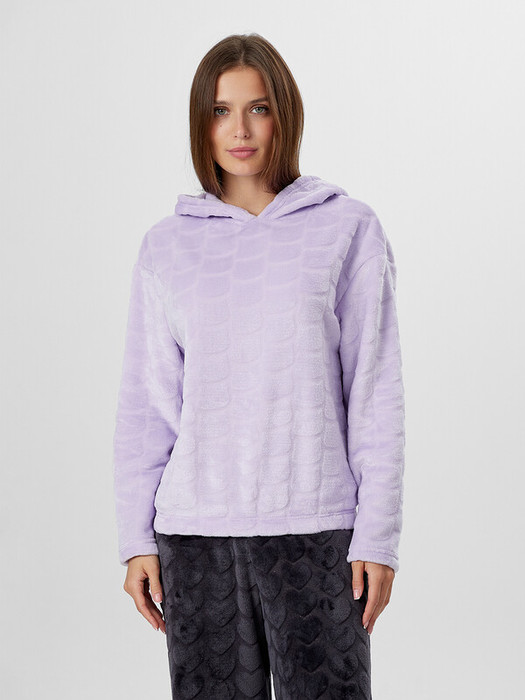 Худи домашнее женское с меховым ворсом — это уютное и стильное решение для комфортного отдыха. Модель свободного силуэта выполнена из мягкого трикотажа с меховым ворсом, который обеспечивает тепло и нежность прикосновения к коже. Круглая горловина с капюшоном и длинные рукава дарят ощущение защищенности, а эластичный пояс по низу мягко фиксирует худи, не стягивая талию.