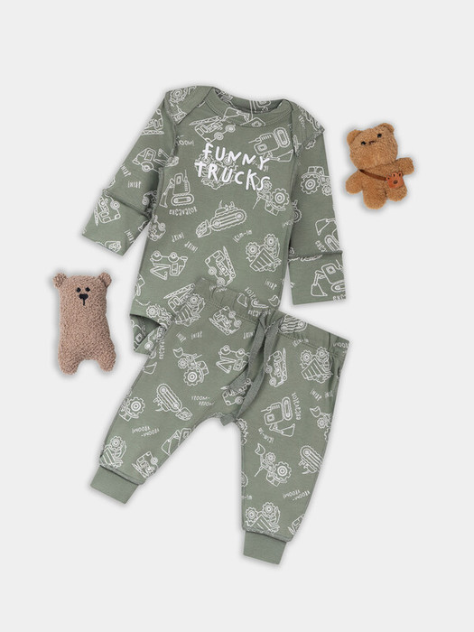 Детский комплект, состоящий из боди и ползунков, выполнен из мягкого интерлока, который обеспечивает комфорт и нежное прикосновение к коже малыша. Швы расположены на лицевой стороне изделия, что делает его особенно деликатным и безопасным для чувствительной детской кожи. Боди имеет круглую горловину, окантованную бейкой из основного материала, и длинные рукава, обеспечивающие тепло и удобство. Застежка на кнопки позволяет легко переодевать ребенка, не причиняя дискомфорта. Ползунки с открытыми ножками не ограничивают движения, а эластичный пояс мягко фиксируется на талии. Манжеты из трикотажной рибаны по низу изделия обеспечивают хорошую посадку и сохраняют форму. Комплект идеально подходит для ежедневного ношения, сочетая в себе практичность, комфорт и заботу о малыше.
