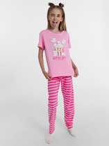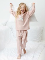 Комплект домашний для девочек с надписью состоит из джемпера и брюк из мягкого хлопка. Он создан для активного отдыха и игр, давая полную свободу движений.