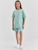 Комплект для девочек состоит из футболки и шорт.