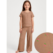 Комплект состоит из рубашки и шорт. Рубашка прямого силуэта, с отложным воротником, спинка цельнокроеная. Плечо слегка спущено. Рукав втачной, одношовный, короткий. Центральная застежка на пуговицы.