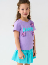 Комплект для девочек состоит из футболки, жакета и брюк.