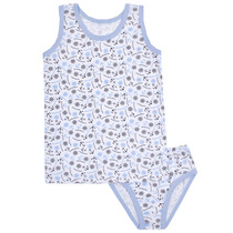 Бельевой комплект для мальчиков, созданный для максимального комфорта и удобства. Выполненный из нежного и приятного к телу хлопкового материала, этот комплект подарит вашему ребёнку ощущение мягкости и заботы на протяжении всего дня. Майка полуприлегающего кроя с круглым вырезом обеспечивает идеальную посадку и свободу движений. Она отлично подходит для повседневной носки, занятий спортом и активных игр. Трусы-боксеры без боковых швов и с эластичной тесьмой в поясе гарантируют абсолютный комфорт. Этот бельевой комплект сочетает в себе высокое качество материалов и продуманность дизайна, что делает его незаменимым элементом гардероба вашего ребёнка. Рекомендуем!