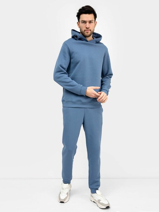 Комплект из трикотажного футера с теплым подчесом. Худи свободного силуэта с капюшоном, который по переду идет внахлест, с круглой горловиной и длинными рукавами на манжетах. Слегка спущенная линия плеча и расширенная пройма дарят полную свободу движений. Брюки зауженого силуэта, с регулировочным шнуром в поясе, с карманами и манжетами. Стильный комплект!