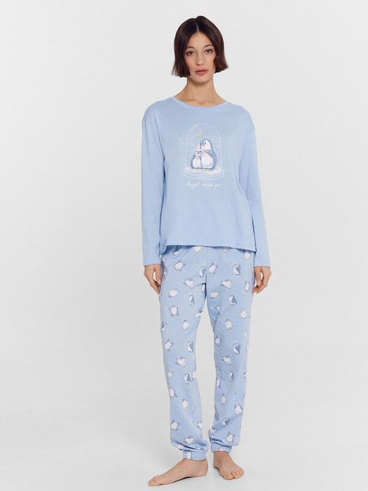Совместные покупки Каменск-Уральский Женская одежда Пижамы, халаты — Mark Formelle КОМПЛЕКТ ЖЕНСКИЙ (ДЖЕМПЕР, БРЮКИ) 592510 592510 голубой +пингвины