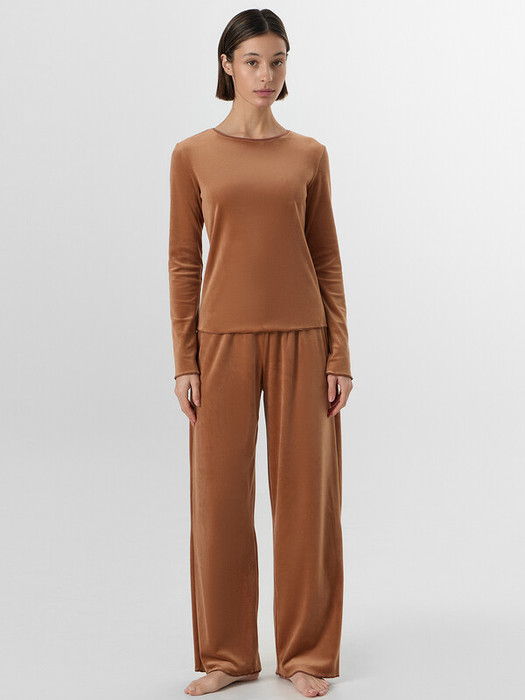 Уютная женская пижама, которая подарит вам комфорт и стиль в каждом моменте отдыха. Этот комплект включает джемпер полуприлегающего силуэта с круглым вырезом горловины и длинными рукавами, а также брюки свободного силуэта со средней посадкой. Джемпер нежно облегает тело, создавая изящный силуэт, а брюки с эластичным поясом на кулиске обеспечивают удобную посадку и свободу движений. Карманы в боковых швах с подкладкой из кулирки добавляют практичности и удобства. Велюр – роскошный и мягкий материал, который приятно ощущается на коже и сохраняет тепло. Эта пижама идеально подходит для домашнего отдыха, вечернего чаепития или утреннего кофе. В ней вы будете чувствовать себя уютно и стильно в любой обстановке!