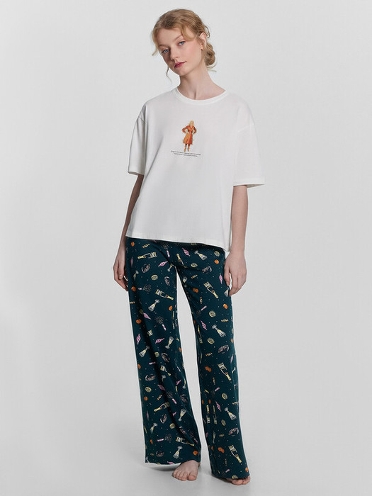 Женская пижама Mark Formelle станет удачным вложением в ваш домашний гардероб или прекрасным подарком для кого-то особенного. Она сочетает в себе удобство и стиль, делая ваши домашние вечера ещё уютнее. Футболка свободного кроя с круглой горловиной и короткими рукавами со спущенной линией плеча обеспечивает максимальный комфорт и свободу движений. Брюки свободного силуэта с эластичным поясом идеально сидят на талии, не стесняя движений и позволяя вам наслаждаться каждым моментом дома. Изделие выполнено из хлопковой кулирки — мягкого, дышащего и гипоаллергенного материала, который приятен к телу и обеспечивает максимальный комфорт. Хлопковая кулирка отлично сохраняет тепло и позволяет коже дышать, делая вашу пижаму идеальной для любого времени года. Подарите себе или своим близким эту чудесную пижаму и ощутите все преимущества комфорта и стиля в одном изделии.