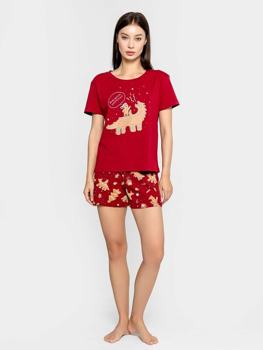 Совместные покупки Каменск-Уральский Женская одежда Домашняя одежда — Mark Formelle КОМПЛЕКТ ЖЕНСКИЙ (ДЖЕМПЕР, ШОРТЫ) 592325 592325 вишневый +печеньки