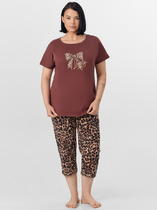 Комплект женский состоит из жакета и бридж. Жакет прямого силуэта, спинка цельнокроеная. На левой детали переда накладной карман (по заданию). Горловина оформлена отложным воротником с лацканами. Край борта и воротника оформлен кантом. Рукав втачной короткий, низ рукава обработан манжетой с втаченным кантом. Жакет с центральной застежкой с петлями и пуговицами. Низ застрочен швом в подгибку.