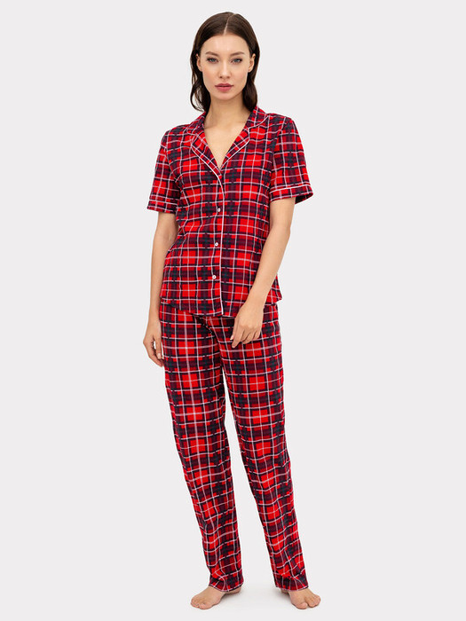 Совместные покупки Каменск-Уральский Женская одежда Домашняя одежда — Mark Formelle КОМПЛЕКТ ЖЕНСКИЙ (ЖАКЕТ, БРЮКИ) 592523-1 592523-1 клетка на красно