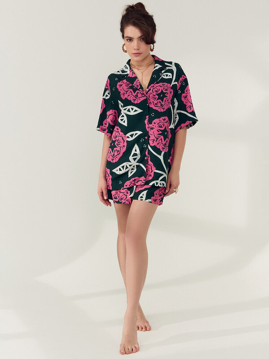 Хлопковый женский комплект, включающий свободную рубашку и шорты мини. Рубашка с короткими рукавами, спущенной линией плеча и отложным воротником – по центру застегивается на пуговицы. Шорты свободные, с эластичной резиной в поясе. Хит сезона!