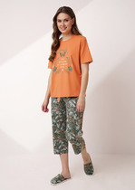 Комплект женский состоит из жакета и шорт. Жакет прямого силуэта, спинка цельнокроеная. Горловина оформлена отложным воротником с лацканами. Жакет с центральной застежкой с петлями и пуговицами. Рукав втачной, короткий, низ обработан ришелье. Низ застрочен швом в подгибку.