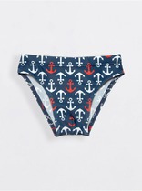 Трикотажное эластичное полотно. Трикотажное полотно, подкладка для купальников. Передняя и задняя детали топа, передняя и задняя детали трусов цельнокроенные. Подкладка передней детали топа и подкладка ластовицы, передней детали трусов из трикотажного полотна. Верхние и нижние срезы трусов и топа обработаны бейкой из основного полотна. По спинке топа застежка. Бретели из основного полотна с надставками, регулируются по длине сзади.