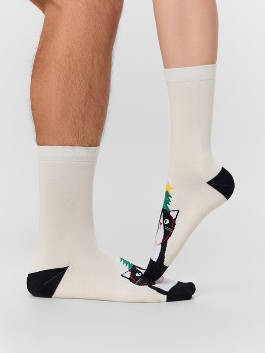 рис.3455 Носки унисекс классические с махровой стопой и рисунком в виде кота