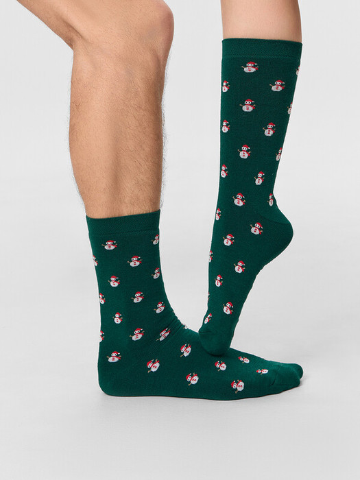 Рис.3456 Носки унисекс классические, махровые с рисунком в виде мелких снеговичков.