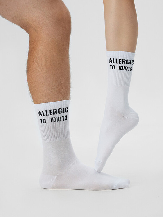 рис.3241 Носок высокий с плотным бортом и рисунком в виде надписи "ALLERGIC to idiots".