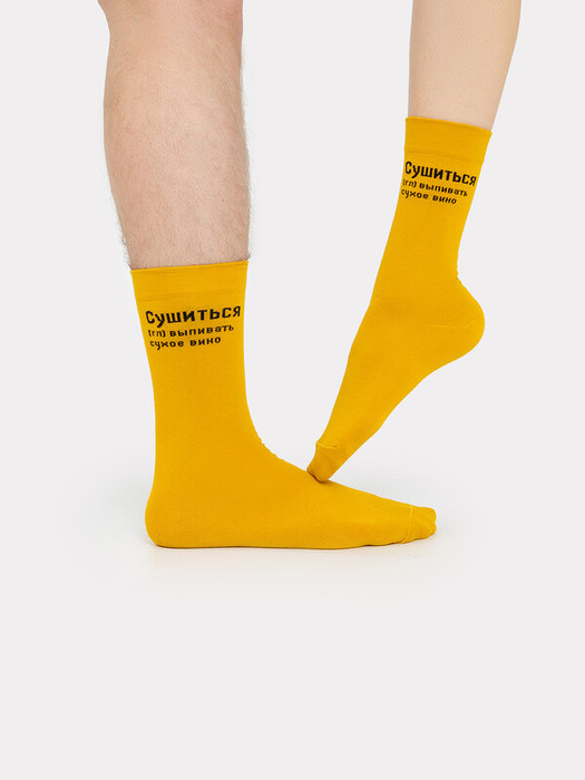 рис.2718 Носки высокие, классические с тонким, гладким бортом с рисунком в виде надписи "Сушиться, (гл) выпивать сухое вино"