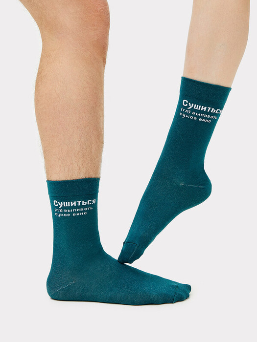 рис.2718 Носки высокие, классические с тонким, гладким бортом с рисунком в виде надписи "Сушиться, (гл) выпивать сухое вино"