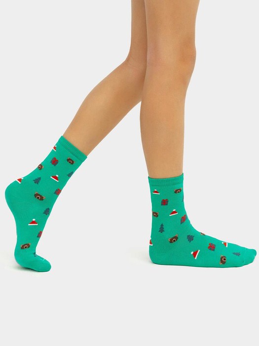 рис.2629  Детский классический носок с рисунком в виде медведей и ёлок