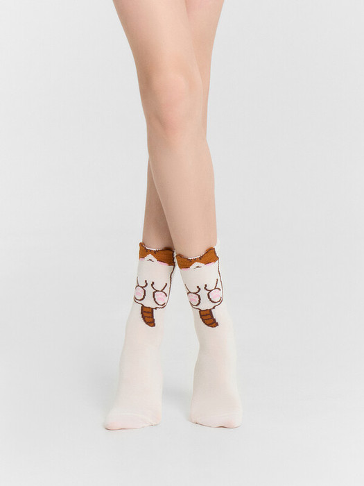рис.3190  Детские классические носки с рисунком в виде котиков с пикотом-ушками на бортике.
