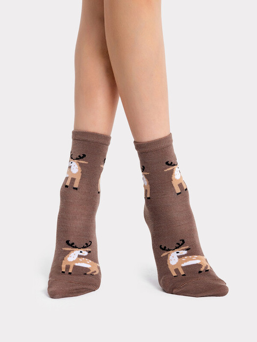 Рис.1426 Детский носок гладкий из тонкой шерсти с рисунком в виде оленей.