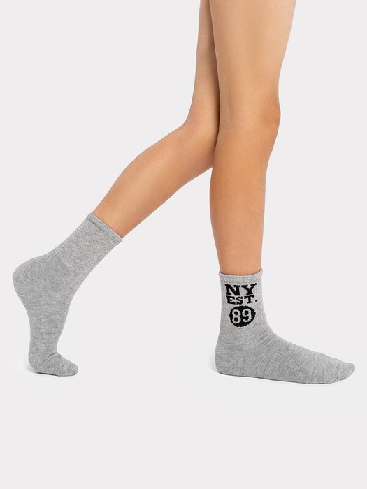 Носки детские из высококачественного хлопка с рисунком в виде надписи "NY EST.89". Натуральные волокна отлично пропускают воздух и впитывают влагу, дарят ощущение комфорта в течение дня. Благодаря небольшому количеству эластана в составе, носки удобно сидят на ножке и не сползают, хорошо тянутся и легко надеваются. Пятка и мысок дополнительно укреплены для защиты от протирания. Резинка мягко, но надежно удерживает носки, не оставляя на коже следов. Эти детские носки точно понравятся вашей маленькой моднице. Рекомендуем!